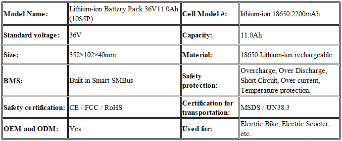 36V11.0Ah (10S5P) Lithium-ion Battery Pack HA019